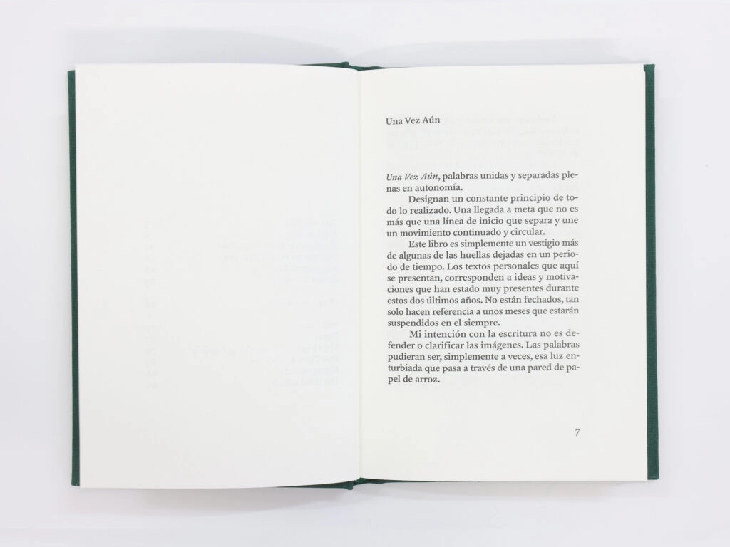 Una vez aún reúne seis pequeños ensayos de Nico Munuera y una selección de pinturas realizadas durante el proceso de preparación de la muestra presentada en la Galería Moisés Pérez de Albéniz, de Madrid, en otoño de 2020. Tal como explica el artista, las palabras que conforman el título «designan un constante principio de todo lo realizado». En efecto, tanto las pinturas reproducidas como los pequeños ensayos inciden en esa práctica constante que es andar y desandar, experimentar y reflexionar con lo experimentado, para llegar a un punto que no es sino un nuevo comienzo.